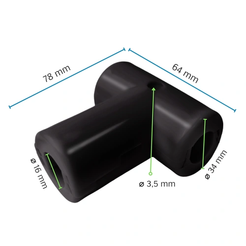 Product from the category "Wired rope accessories". "T" type connector allows to create climbing nets, ladders. Used to connect two ropes at 90 degrees. Public playground with our components are the best quality.