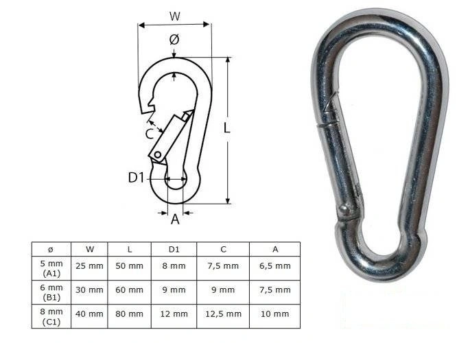 Metal carabine hook 5x25x50 mm